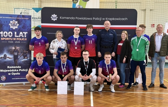 21 kwietnia br. w Hali Widowiskowo-Sportowej w Krapkowicach odbył się długo oczekiwany Turniej Piłki Nożnej Halowej o Puchar Komendanta Powiatowego Policji w Krapkowicach. Wydarzenie, organizowane z wielkim zaangażowaniem, zgromadziło najlepszych piłkarzy ze szkół ponadpodstawowych powiatu krapkowickiego oraz funkcjonariuszy KPP w Krapkowicach. Po zaciętym boju zwyciężyła drużyna z Zespołu Szkół Zawodowych im. Piastów Opolskich w Krapkowicach. To wydarzenie idealnie wpisało się w setną rocznicę sportu w Policji.