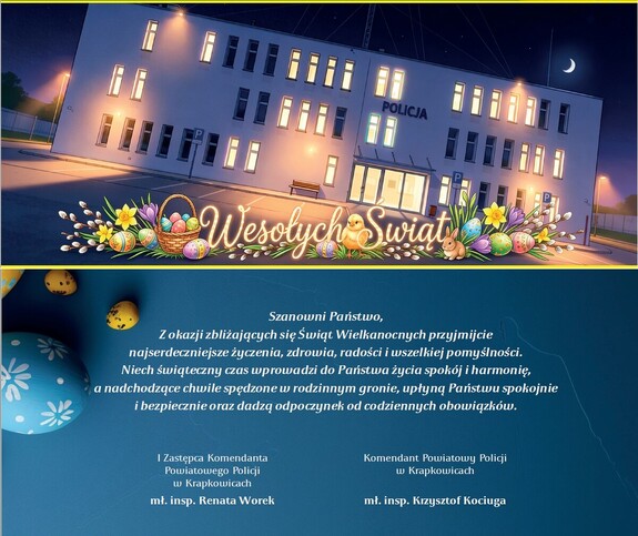 Wielkanocne życzenia Kierownictwa Komendy Powiatowej Policji w Krapkowicach
