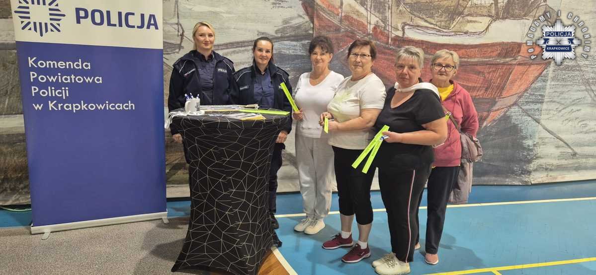 Takie spotkanie było doskonałą okazja, aby porozmawiać o bezpieczeństwie, dlatego nie zabrakło tam również krapkowickich policjantów. Mundurowi rozmawiali z uczestnikami o tym, jak dbać o swoje bezpieczeństwo na co dzień – zarówno w domu, jak i na drodze. Funcjonariusze przypomnieli seniorom co zrobić i jakich sytuacji unikać, aby nie dać się oszukać "na wnuczka" czy "na policjanta" lub podczas zakupów w internecie. Policjanci rozdali też odblaskowe opaski, które wpłyna na bezpieczeństwo seniorów poruszających sie po drogach naszego powiatu.