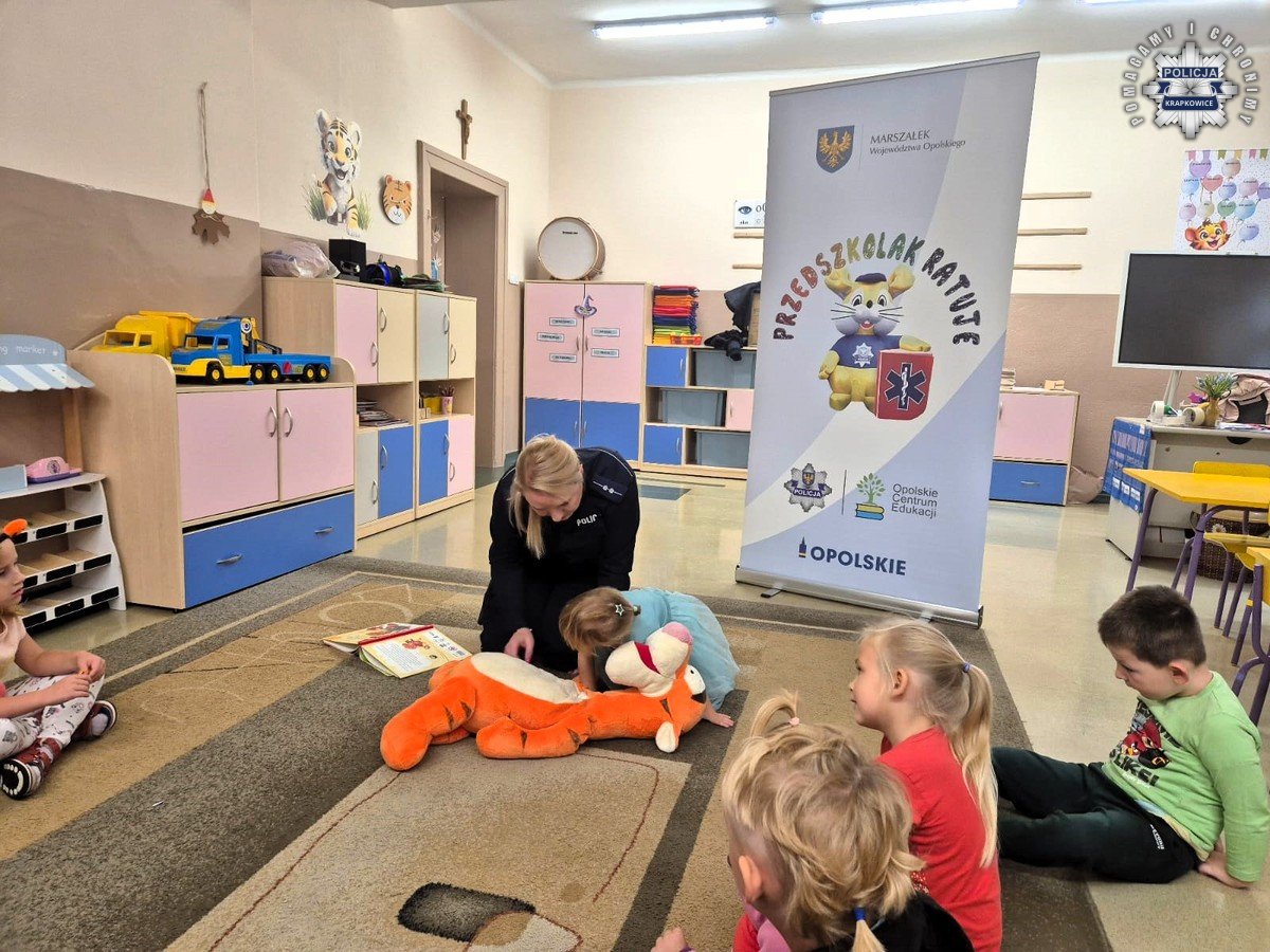 Krapkowiccy Policjanci kontynuują wspólną inicjatywę samorządu Województwa Opolskiego i Komendy Wojewódzkiej Policji w Opolu pn., „Przedszkolak Ratuje”. Jego głównym celem jest rozwijanie u dzieci świadomości i umiejętności niezbędnych do reagowania w sytuacjach zagrożenia życia i zdrowia. Tym razem maluchy z przedszkoli z Dąbrówki Górnej oraz Rogowa Opolskiego poznały numery alarmowe i wiedzą już jak wezwać pomoc. Sztuka ratowania ludzkiego życia nie jest wcale prosta, dlatego warto ją przekazywać już najmłodszym.