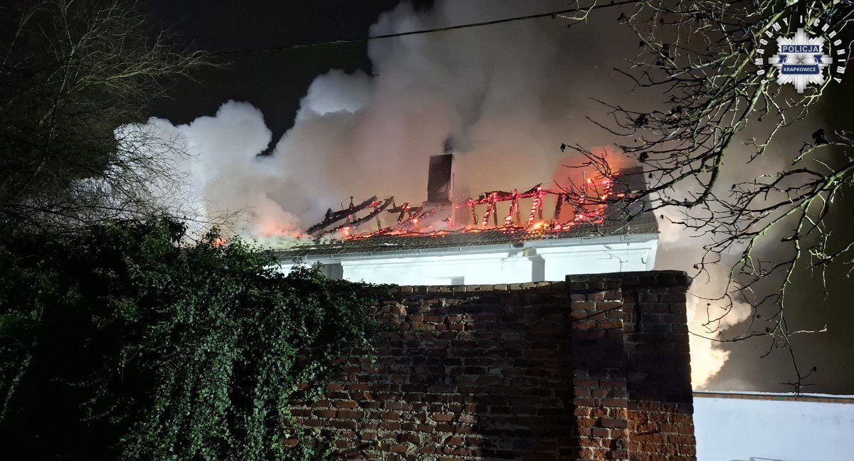Krapkowiccy policjanci wyjaśniają okoliczności pożaru, który wybuchł w nocy w jednym z budynków stadniny koni w Mosznej. Na piętrze budynku znajdowało się pomieszczenie mieszkalne, z którego w porę ewakuował się 55-letni mężczyzna. Od wczesnych godzin rannych, aż do teraz trwa akcja gaśnicza, a funkcjonariusze zabezpieczają miejsce zdarzenia. W wyniku pożaru zniszczeniom uległo mieszkanie oraz pomieszczenia, w którym źrebią się konie. Ponad 20 koni zostało ewakuowanych.