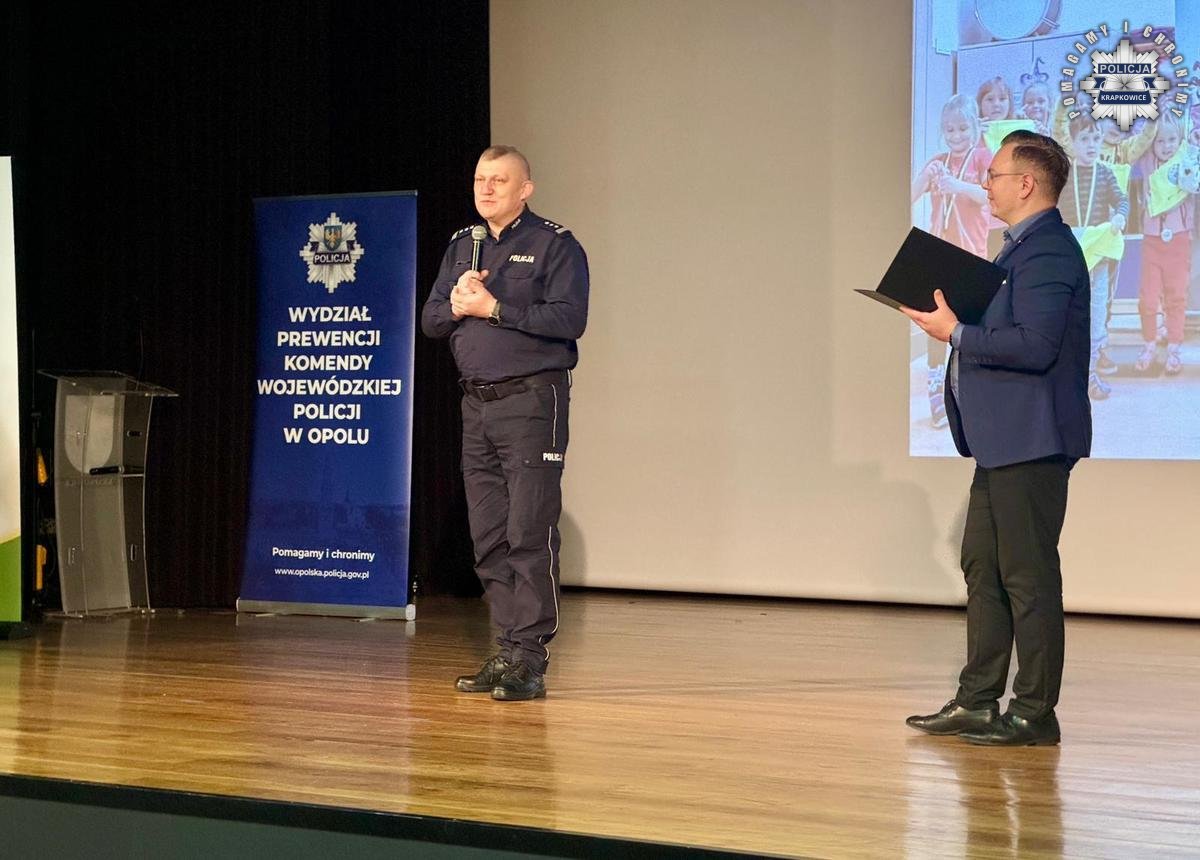 Do tegorocznej odsłony programu włączyły się przedszkola i zespoły szkolno-przedszkolne z całego powiatu krapkowickiego. To właśnie ich mali podopieczni byli bohaterami gali, prezentując efekty kilkumiesięcznych zajęć prowadzonych przez funkcjonariuszy z krapkowickiej komendy w ramach realizacji wojewódzkiego projektu pn. ”Przedszkolak ratuje”. Porozumienie, które zostało podpisane pomiędzy Komendantem Wojewódzkim Policji w Opolu nadinsp. Magdaleną Nguyen-Fudalą oraz Dyrektorem Opolskiego Centrum Edukacji Ireneusza Podolakiem reprezentującym Województwo Opolskie, objęło m.in. przedszkolaki z powiatu krapkowickiego. Celem projektu jest nauka przedszkolaków z zakresu udzielania pierwszej pomocy, prawidłowego powiadamiania służb ratunkowych, a także propagowania bezpieczeństwa i unikania zagrożeń w domu, na ulicy czy też w kontaktach z osobami nieznajomymi, tak, aby najmłodsi mieszkańcy naszego województwa mogli poradzić sobie w trudnej sytuacji.