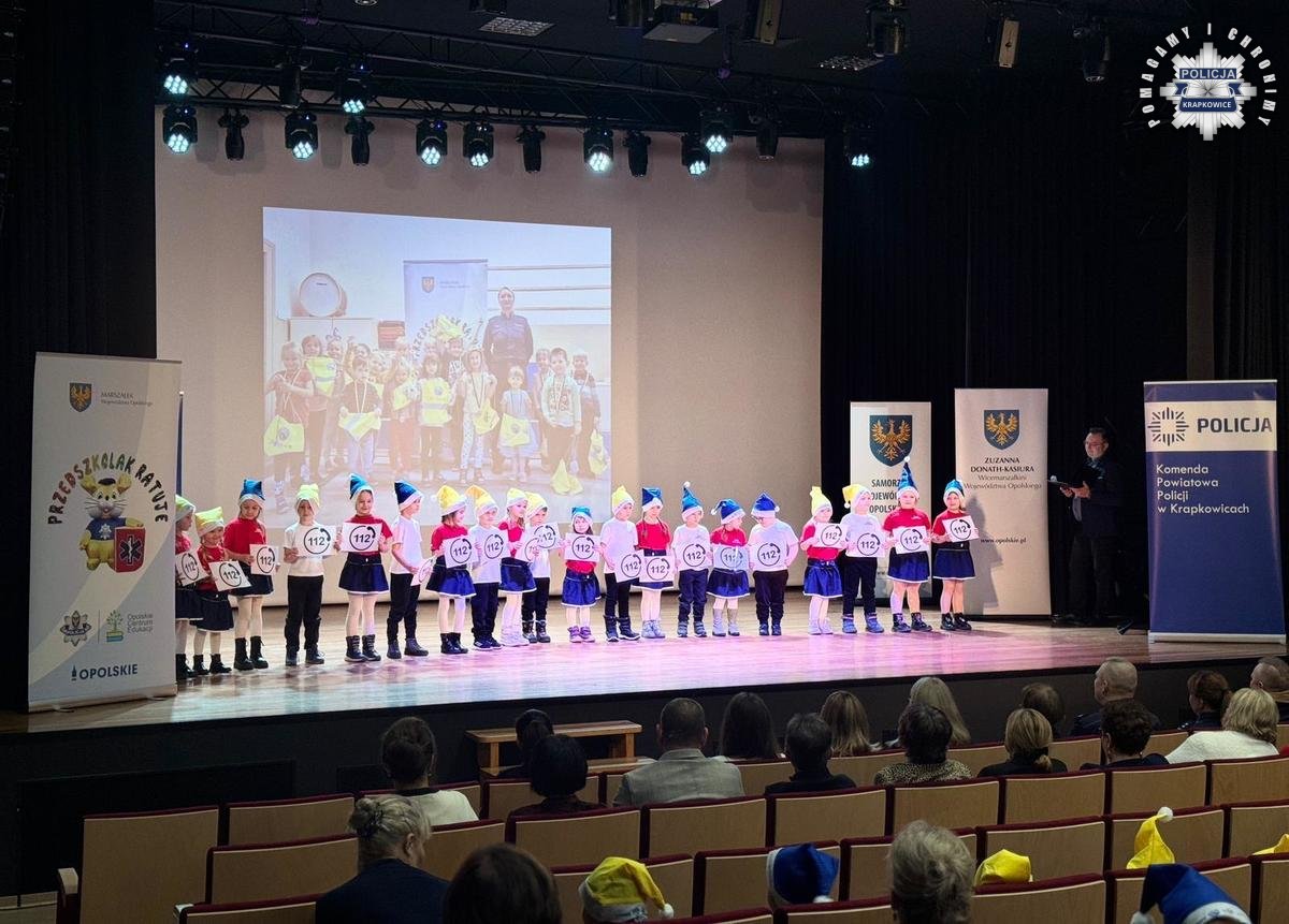 W Krapkowickim Domu Kultury odbyło się wczoraj wyjątkowe wydarzenie – uroczyste zakończenie programu profilaktycznego pn. „Przedszkolak Ratuje”. Sala kinowa wypełniła się muzyką, radością i dziecięcą energią, a ponad 170 przedszkolaków z całego powiatu pokazało, że nauka zasad pierwszej pomocy może być nie tylko pożyteczna, ale i fascynująca.